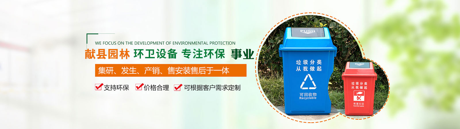 產(chǎn)品有:果皮箱、垃圾箱、花盆、護(hù)花欄、路椅、大型袋裝垃圾箱、保潔專(zhuān)用三輪車(chē)及環(huán)藝雕塑、健身器材及物業(yè)小區(qū)配套設(shè)施等。